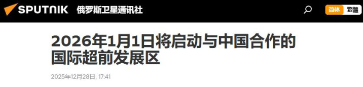 1.《2026年1月1日将启动与中国合作的国际超前发展区》2025-12-28 17:41 | 来源:俄罗斯卫星通讯社